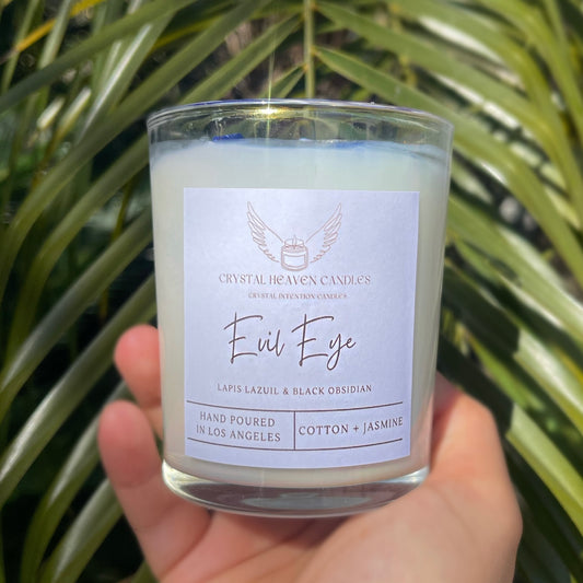 Evil Eye Lapis Lazuli & Black Obsidian Crystal Candle