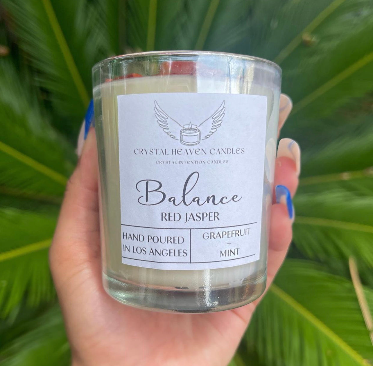 This candle is infused with a Red Jasper tumbled and Red Jasper crystal chips scented grapefruit and mint. Red Jasper is a grounding and balancing crystal that’s great for those who feel as though they’re all over the place. It can help bring some stability back into your life, and also support you through any current changes you might be going through. It is connected to your root chakra which helps you feel safe and secure within the world, and keeps you grounded!